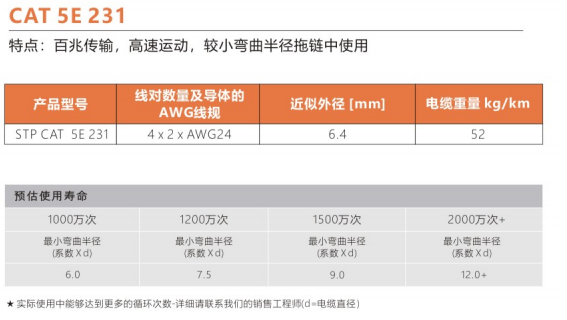 彎曲半徑 : 非拖鏈內(nèi)運(yùn)動(dòng):5.0X電纜外徑