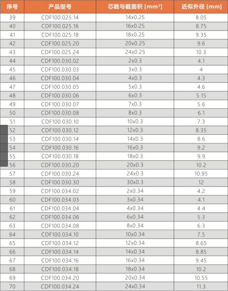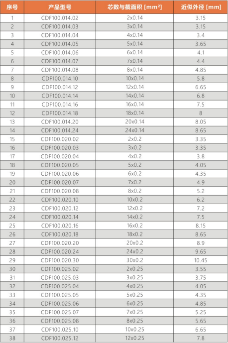 CDF100系列:適合于高速運動,標準彎曲半徑拖鏈中使用。耐磨/耐彎曲/阻燃/環(huán)保/抗撕裂等性能優(yōu)異,耐油類附著。常用于:3C,醫(yī)療,新能源,航天,軍工裝備等行業(yè)拖鏈系統(tǒng)的信號傳輸。