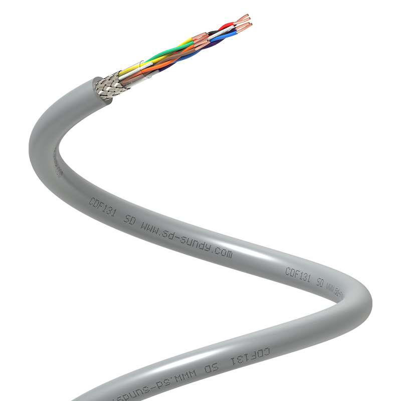 編碼器電纜適用于各種品牌伺服電機(jī)信號(hào)傳輸,特別適用于工業(yè)環(huán)境中,芯線以短節(jié)距絞成一根對(duì)線,再以短節(jié)距束絞成導(dǎo)線對(duì),如此可大幅降低電纜芯線之間的電磁干擾,延長使用彎曲壽命,本產(chǎn)品高度抗彎、鍍錫銅絲編織屏蔽,光學(xué)覆蓋約85%以上,有效阻抗外部電磁干擾。