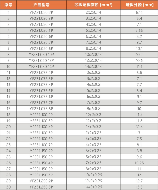 彎曲半徑 : 非拖鏈內(nèi)運(yùn)動(dòng):10.0X電纜外徑