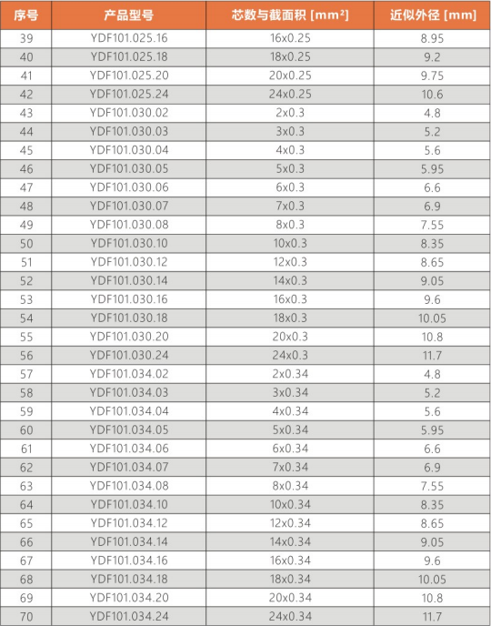 作為控制和信號電纜用于計算機系統(tǒng)的電子設備、電子控制設備、辦公機械、工業(yè)自動化機械中,在往復拖鏈運動中保持信號傳輸穩(wěn)定,電纜鍍錫銅高編織密度,完全符合抗電磁干擾要求。
